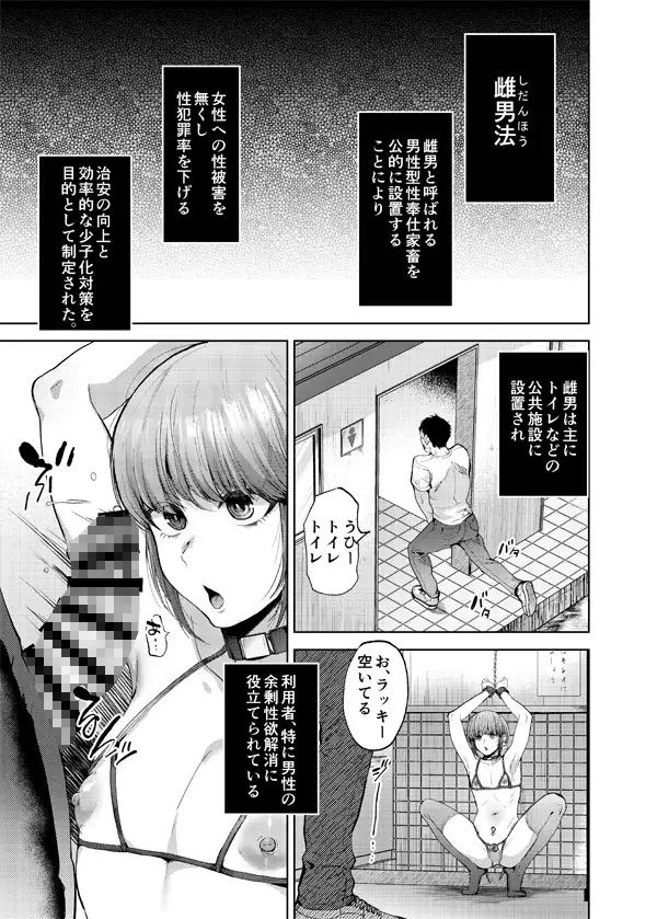 雌男法という、若年男性を改造し肉便器として使用する法律ができた世界の話です。